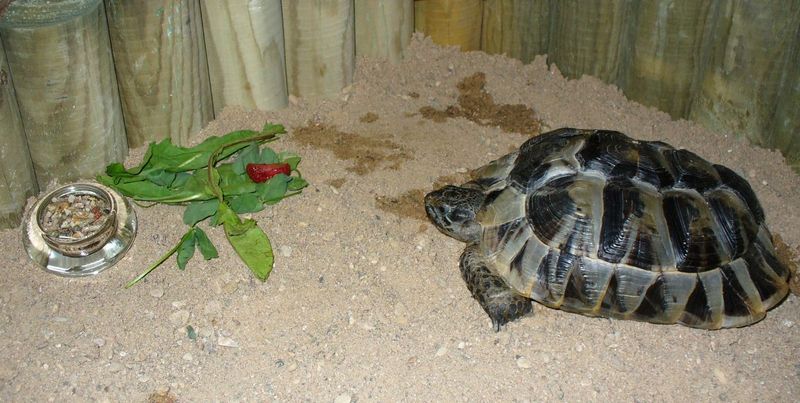 Stavěl jsem pro něj terárko 80x50x30cm. Nechal jsem si nařezat sklo o tl.6mm a slepil sklenářskými silikonem. Na to, že to byl můj první sklenářský počin, tak přežilo dodnes. Jen jej již nepoužívám. V létě měl výbeh s pískem na balkóně :) Svítí se mu jednou žárovkou pro teplo a UV lampou kvůli vitamínům. Krmí se zelením, občas slupne i něco bílkovinného.